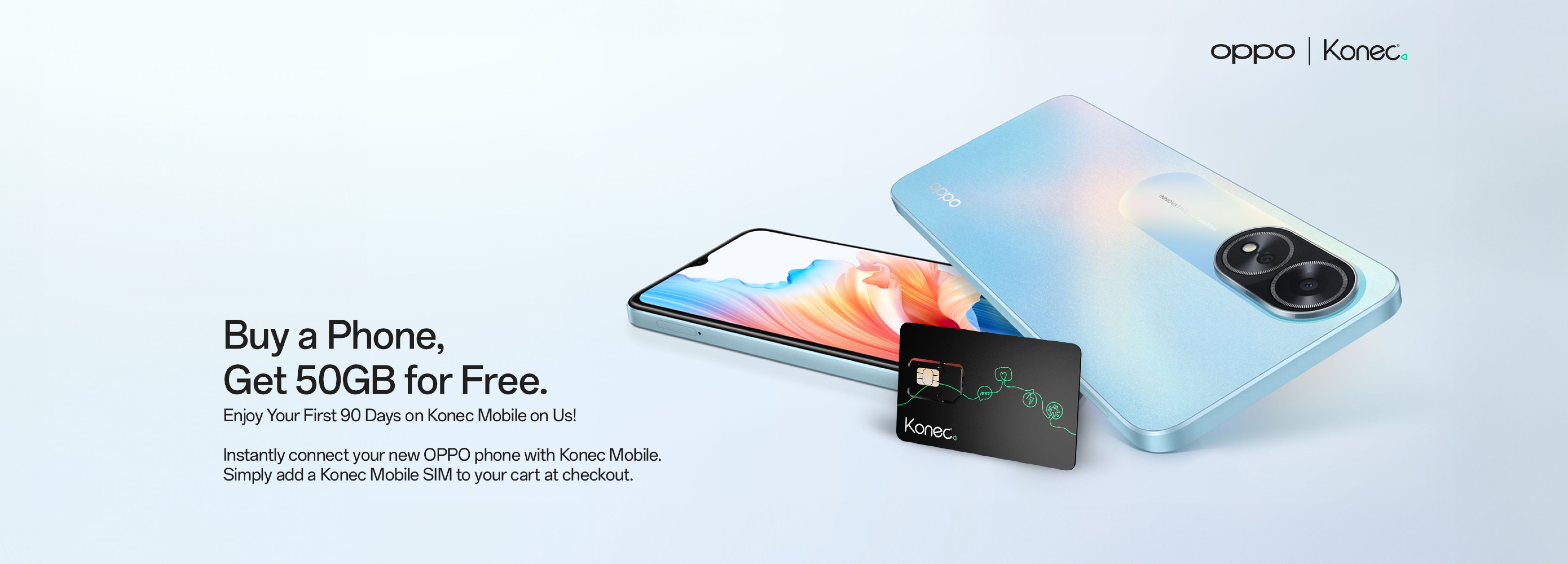 Your order delivery will include both your new OPPO phone and Konec SIM