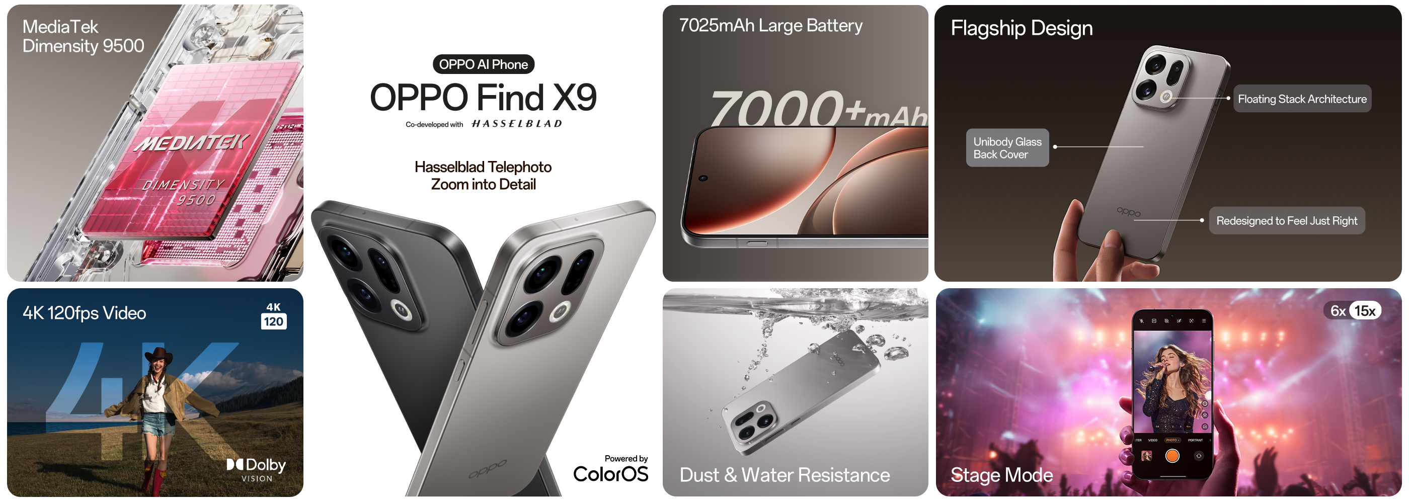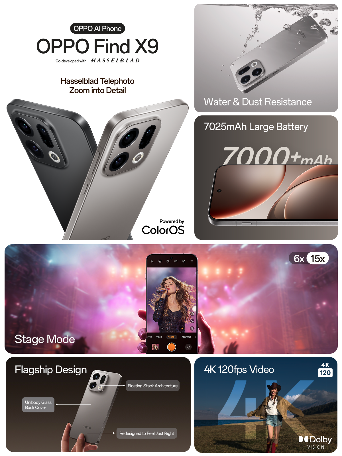 The OPPO Find X9 redefines mobile photography and performance. Capture breathtaking detail with 120x Super Zoom and Hasselblad Master Camera System for lifelike shots in any lighting. Equipped with a 7025mAh battery and 80W SUPERVOOC™ flash charging, enjoy longer‑lasting power with quicker top‑ups. Record in 4K 120fps video for smooth, professional-quality results that make every moment unforgettable.