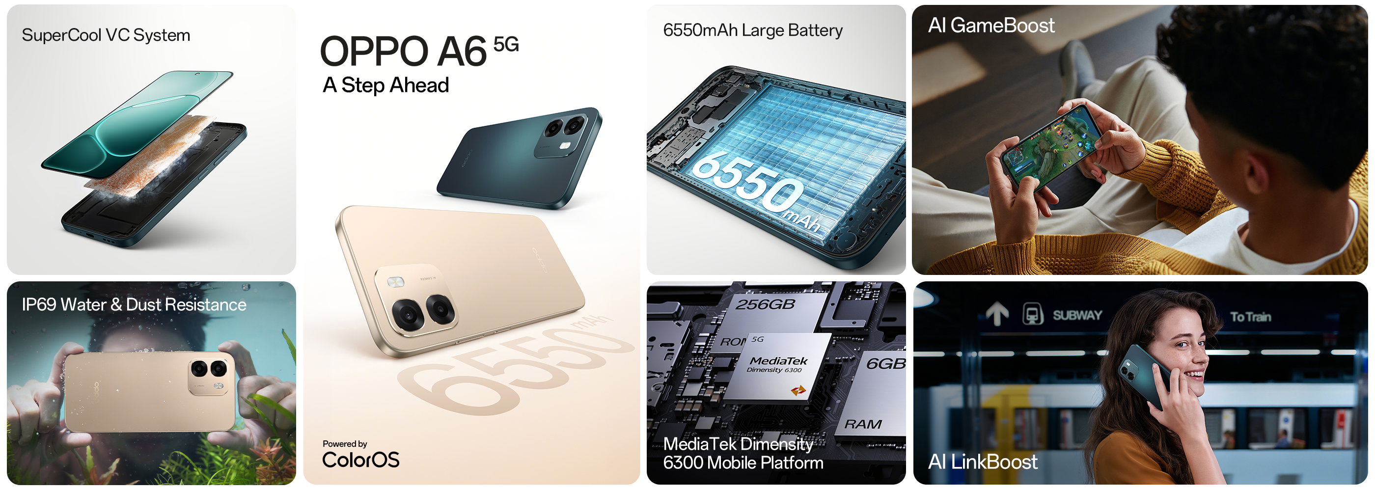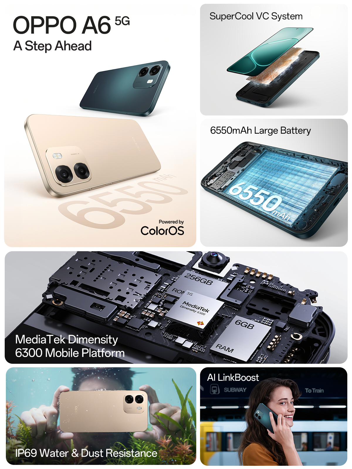 Stay a step ahead with the OPPO A6 5G with 6550mAh large battery and 45W SUPERVOOC™ Flash Charge so you can charge less and live more. Whether you love underwater photography or singing in a steamy shower, this phone has your back. It takes water resistance up a gear, resisting jets of water, total immersion, and water up to 80°C with IP69 Water and Dust Resistance. Enjoy dazzling clarity and smooth motion on a 120Hz Ultra Bright display. Peak brightness ensures clear visibility even in bright sunlight.
